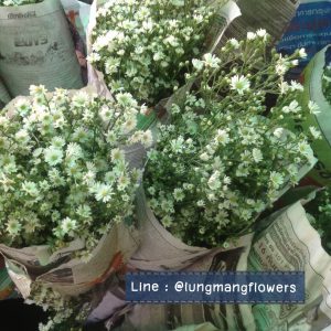 ช่อกลมกุหลาบขาว กระดาษสีแดง