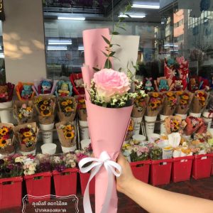 ช่อดอกกุหลาบชมพู 1 ดอก กระดาษสีชมพู