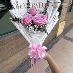 ช่อดอกกุหลาบชมพู 3 ดอก